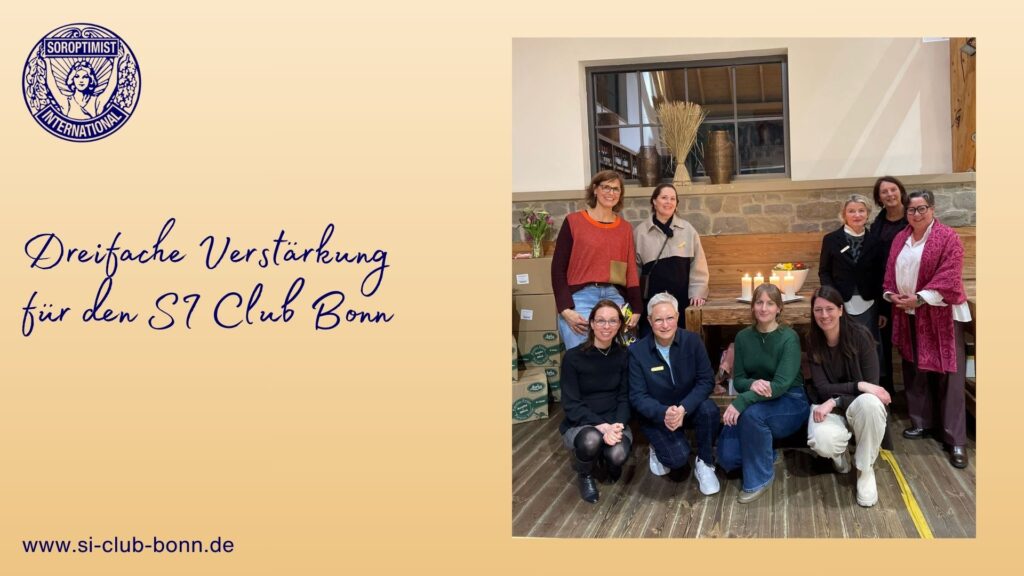 - Dreifache Verstärkung für den SI Club BonnWir freuen uns über die Aufnahme von drei neuen Clubschwestern in unserem Club! Jede von ihnen wird von zwei Patinnen begleitet – ein schönes Zeichen… Dreifache Verstärkung für den SI Club Bonn weiterlesen
