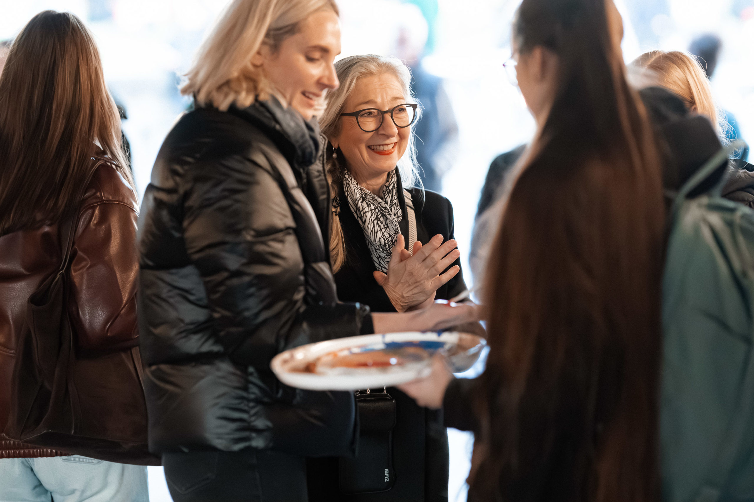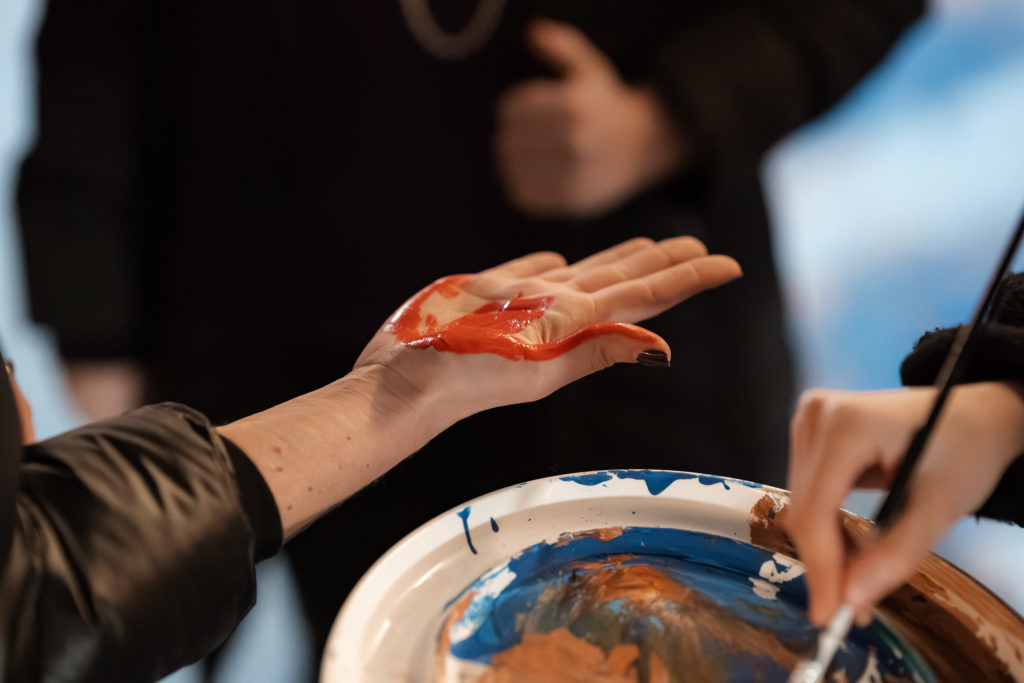 Bei der feierlichen Vorstellung des Projekts am 7. November 2025 haben wir gemeinsam mit den Initiatorinnen unsere eigenen Handabdrücke auf dem Wandbild hinterlassen – ein symbolisches Versprechen, weiter laut zu bleiben gegen Gewalt, Schweigen und Wegsehen.