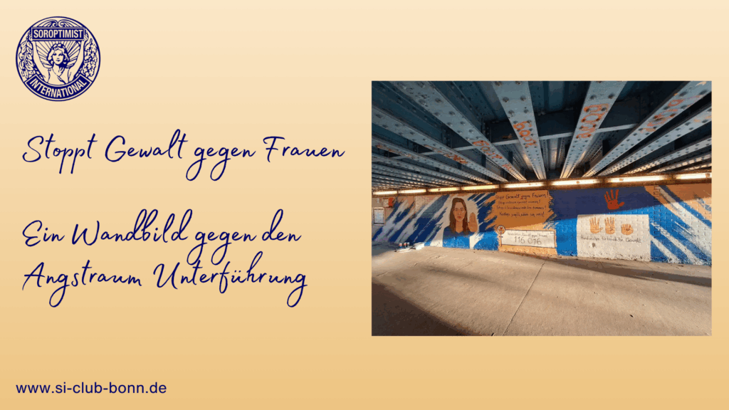 Rund um den Internationalen Tag gegen Gewalt an Frauen am 25. November haben sich die drei Bonner Clubs von Soroptimist International wieder mit der Gleichstellungsstelle der Stadt Bonn, den beiden Bonner ZONTA-Clubs, UN Women Deutschland und der Evangelischen Kirche Bonn zusammengeschlossen – um ein klares, unübersehbares Zeichen zu setzen: